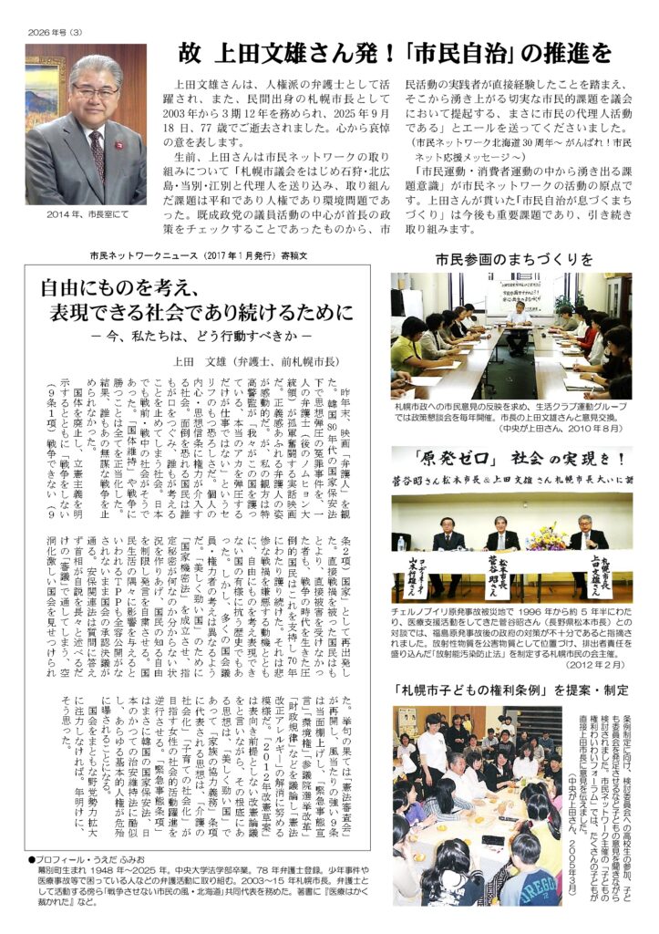 市民ネットワーク北海道 2026年号
