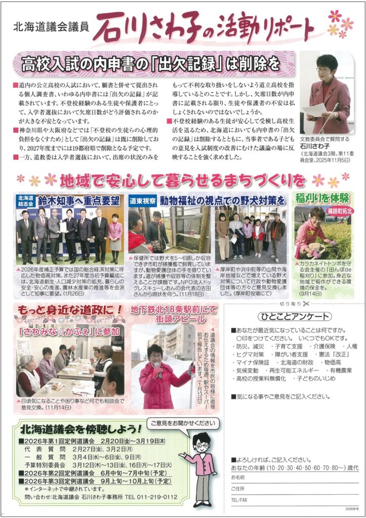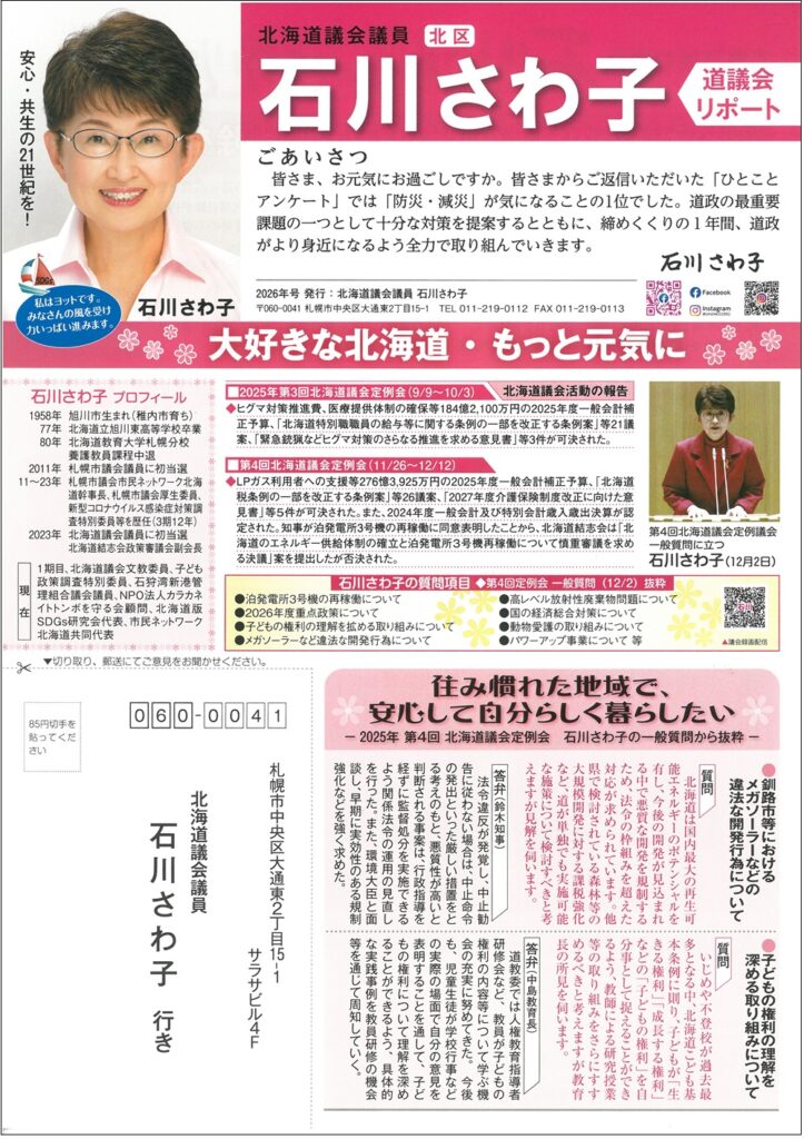 ...-2025年 第4回 北海道議会定例会 石川さわ子の一般質問から抜粋-