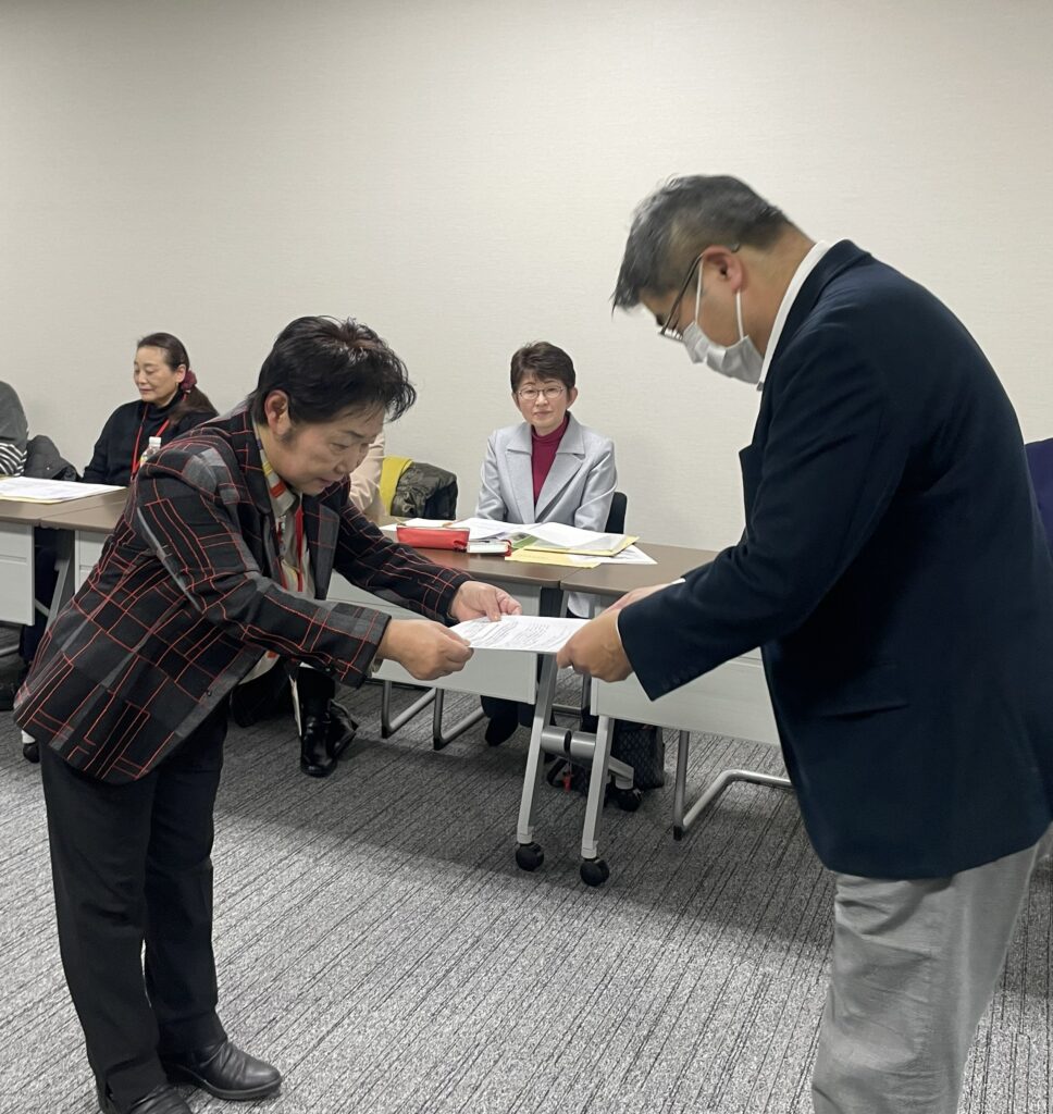 ワクチントーク北海道代表 荻原さんが提出。(1月16日、北海道議会議事堂にて)