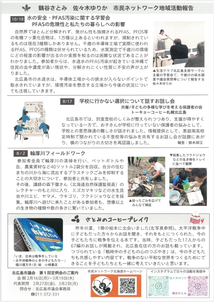 ・鶴谷さとみ 佐々木ゆりか 市民ネットワーク地域活動報告