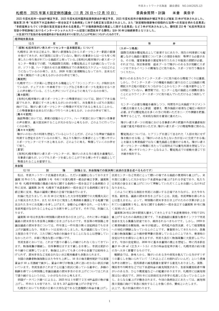 ◆議会通信はこちらから 経済観光委員会(12月5日) 議案審査特別委員会委員会 討論(12月8日) 討論 録画配信はこちらから 本会議 討論(12月10日) 討論 録画配信はこちらから FacebookXBlueskyCopy